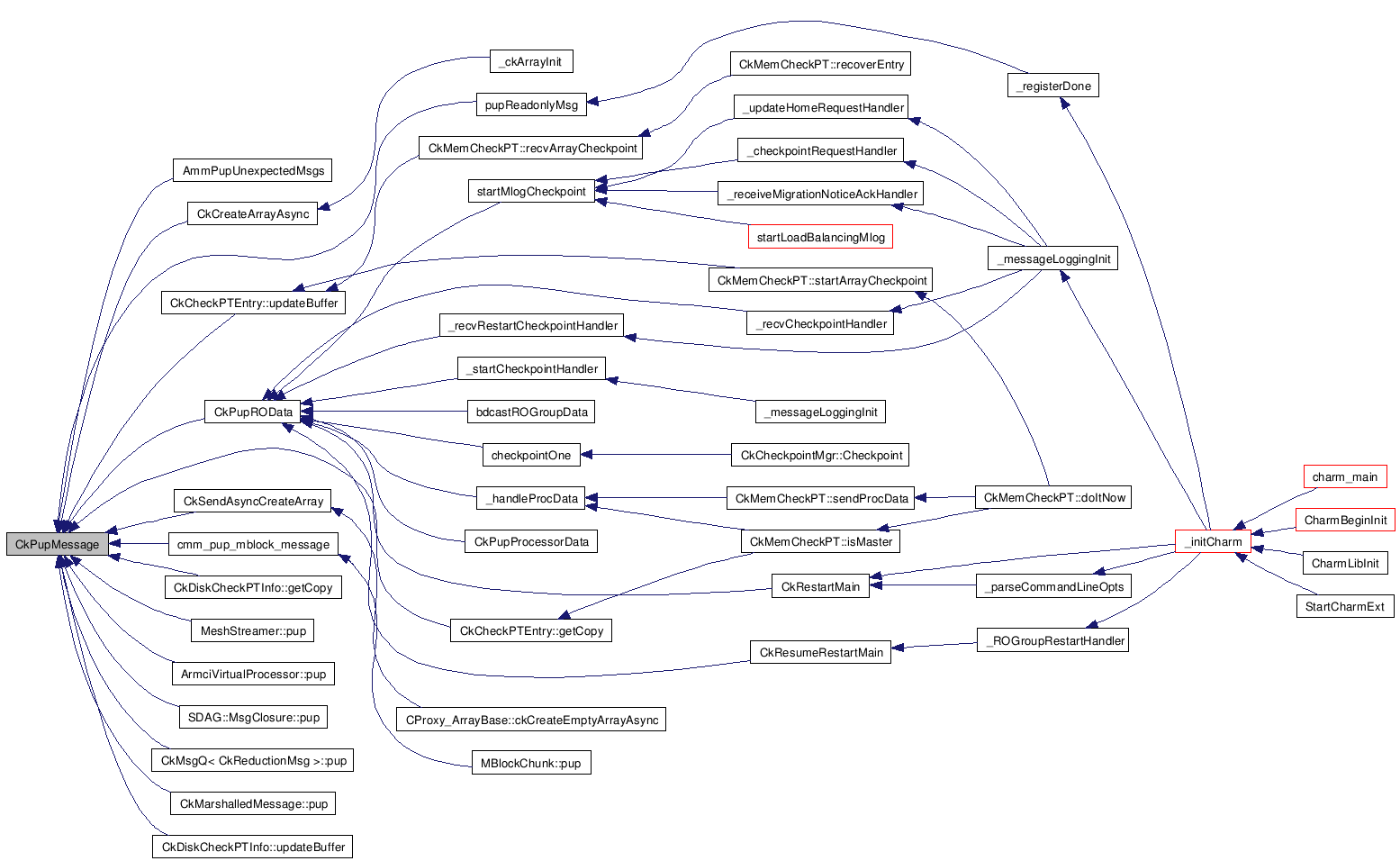 Referenced by AmmPupUnexpectedMsgs(), CkCreateArrayAsync(), CkPupROData(), CkSendAsyncCreateArray(), cmm_pup_mblock_message(), CkCheckPTEntry::getCopy(), CkDiskCheckPTInfo::getCopy(), MeshStreamer< dtype >::pup(), ArmciVirtualProcessor::pup(), SDAG::MsgClosure::pup(), CkMsgQ< CkReductionMsg >::pup(), CkMarshalledMessage::pup(), pupReadonlyMsg(), CkCheckPTEntry::updateBuffer(), and CkDiskCheckPTInfo::updateBuffer().